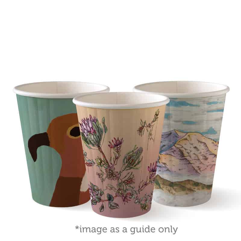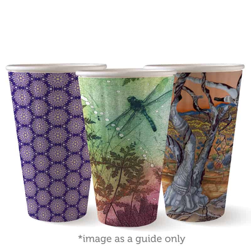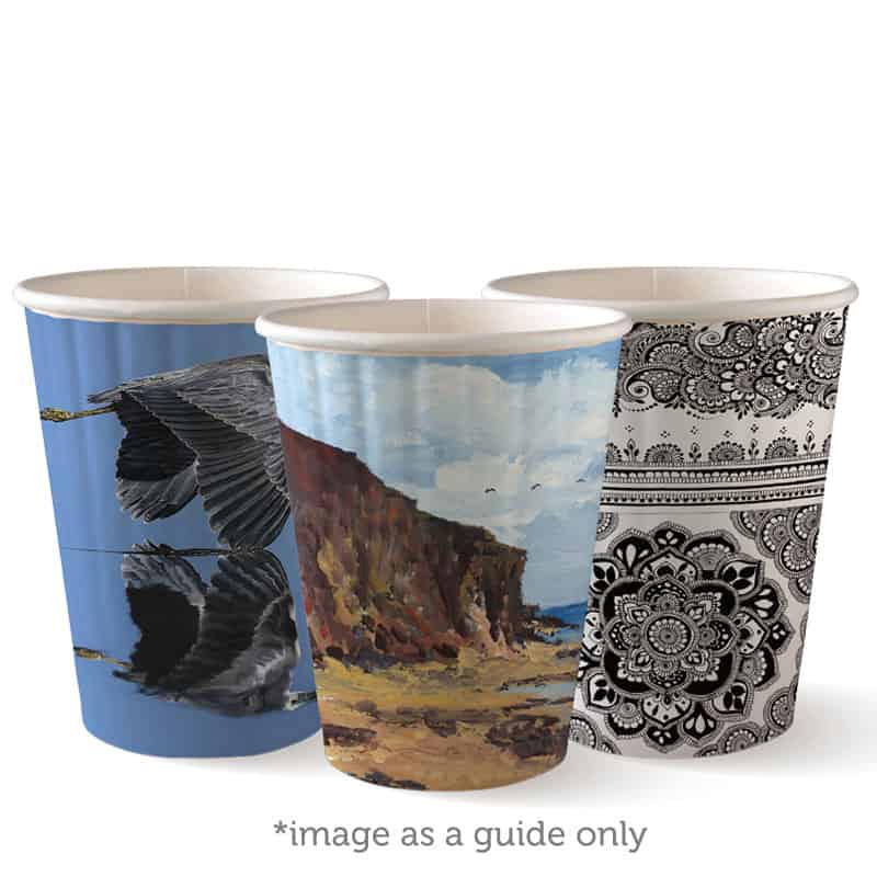 BioPak Art Series Double Wall Hot Cups feature limited edition Art Series designs. Available in four sizes with matching universal lids, these cups are made with paper sourced from managed plantations and coated with Ingeo™ – a bioplastic made from plants not oil.