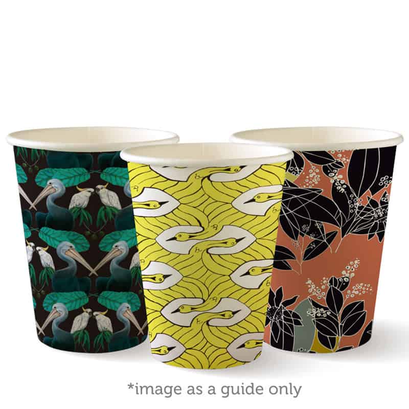 BioPak Art Series Single Wall Hot Cups feature limited edition Art Series designs, and are made with paper sourced from managed plantations and coated with Ingeo™ – a bioplastic made from plants not oil. Available in seven sizes with compatible lids.