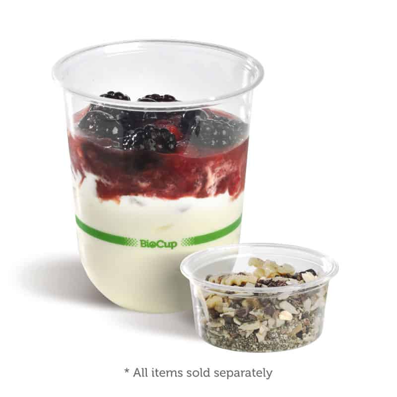 BioCups are a sustainable alternative to disposable drink cups, made from plant-based plastics or sustainably sourced paper, with options available for all cold serving needs.