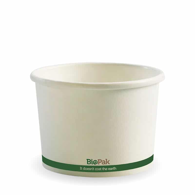 BioPak Paper BioBowls are sourced from managed plantations and coated with a bioplastic lining made from plants not oil. Suitable for hot and cold food and liquids.