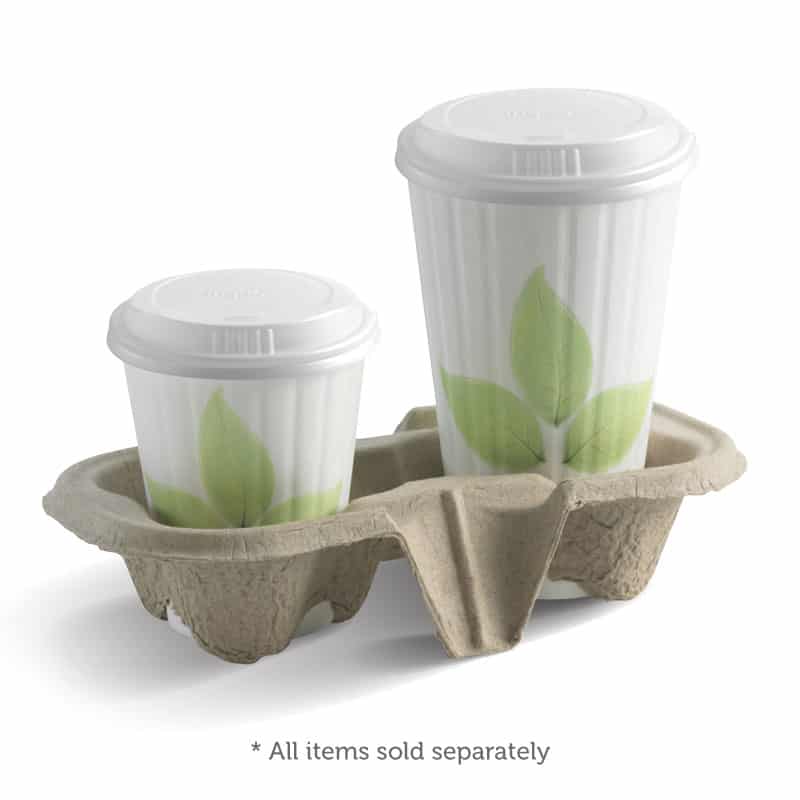 BioPak Recycled Cup Trays are made from 100 percent post-consumer recycled paper pulp. Available in two and four compartment configurations, these trays are sturdy and, unlike cardboard, do not require assembly. Plus, the nesting design ensures they take up very little space.