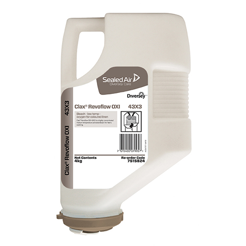 | Clax Revoflow 200 | Blend of surfactants and fluorescent whitening agents, specially formulated for use with alkalis to enhance the removal of oil and grease from white or coloured polyester-cotton garments, table linen, greasy shop towels and wipes, and oil and grease stained linen supply work. |