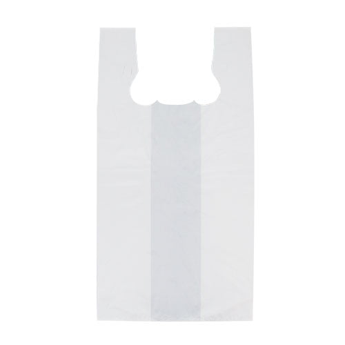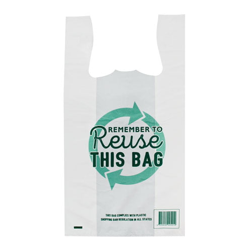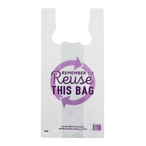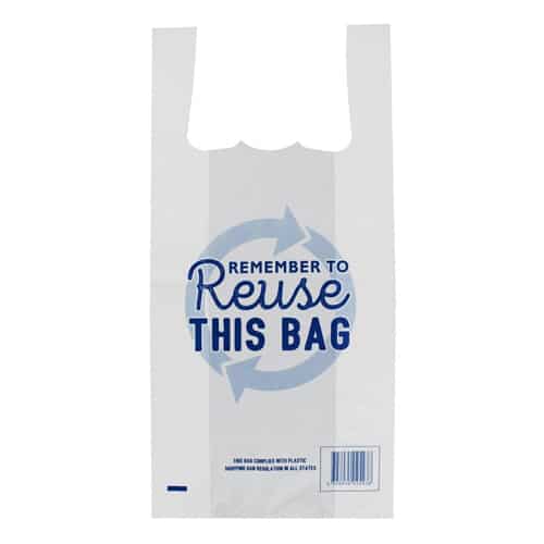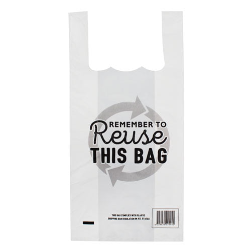 Helping reduce impact on the environment with our strong 37 Micron reusable singlet bag range. You can choose between a plain white bag or a printed design. The printed bags include a barcode so they can be quickly scanned at retail check outs.