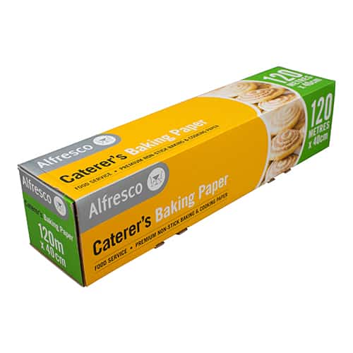 Tailored Packaging Alfresco Premium Baking Paper Roll has a non-stick coating, making Alfresco Caterer’s Baking Paper a healthier way to cook with no need to grease or bake with fats or oils.