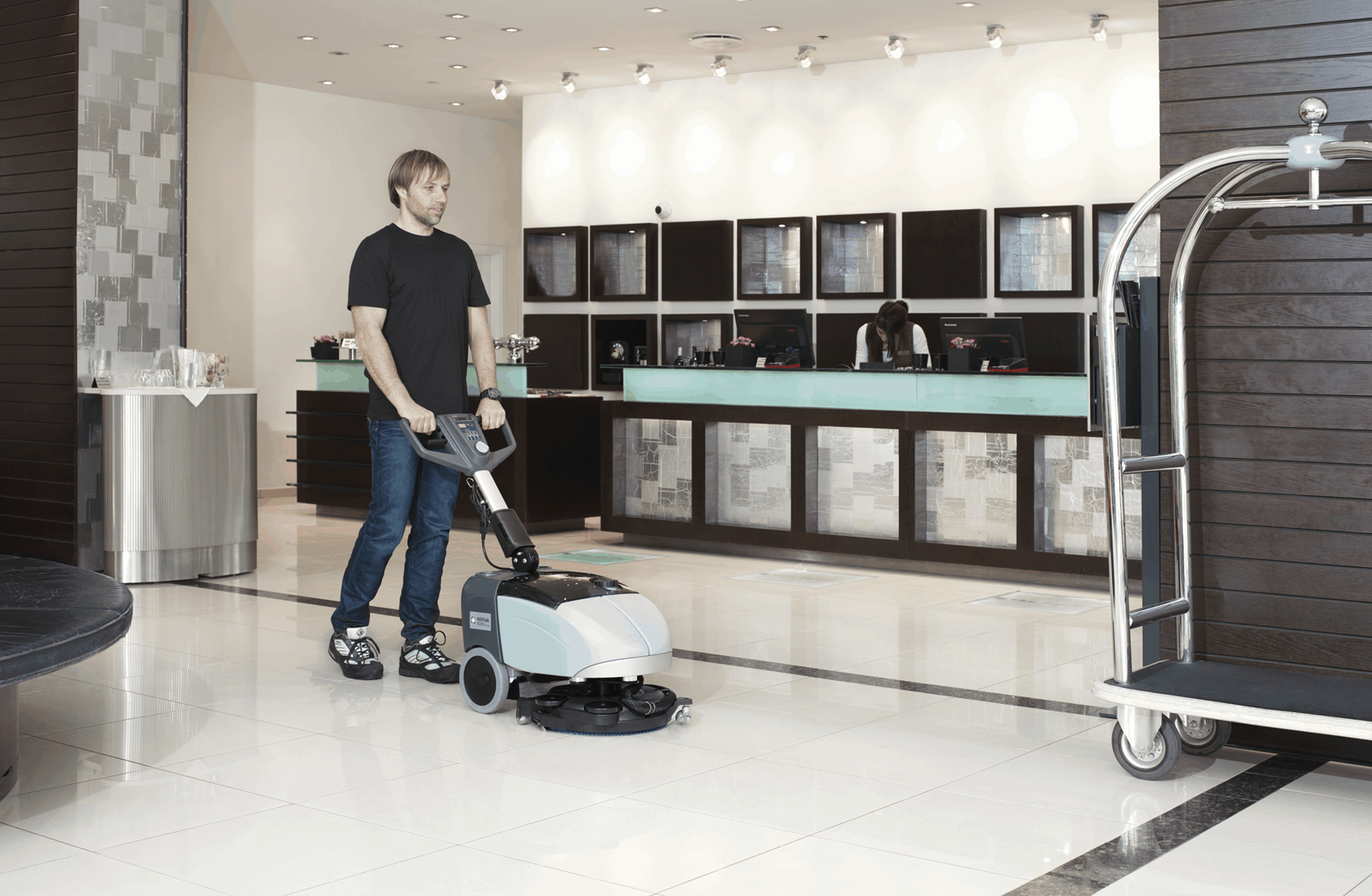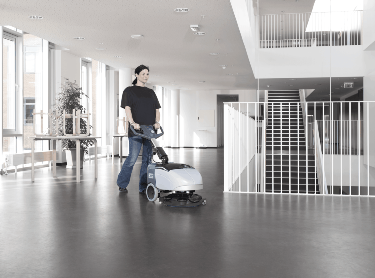 Drop the mop and achieve remarkable results with Nilfisk SC351 compact walk behind Scrubber/Dryer.