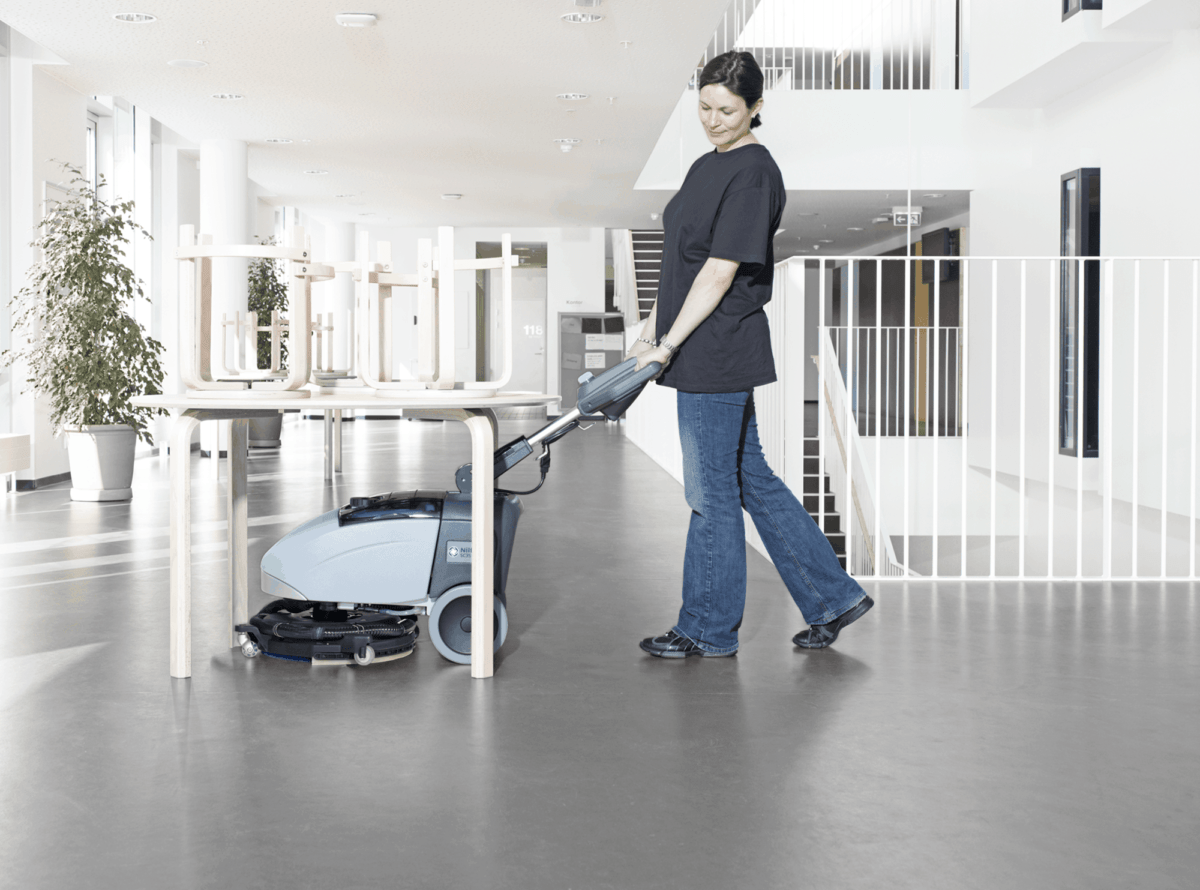 With powerful forwards and backwards scrubbing pressure of 27kg and 370mm brush diameter the Nilfisk SC351 is Ideally suited for cleaning hotels, schools, small shops, offices, canteens and coffee shops.