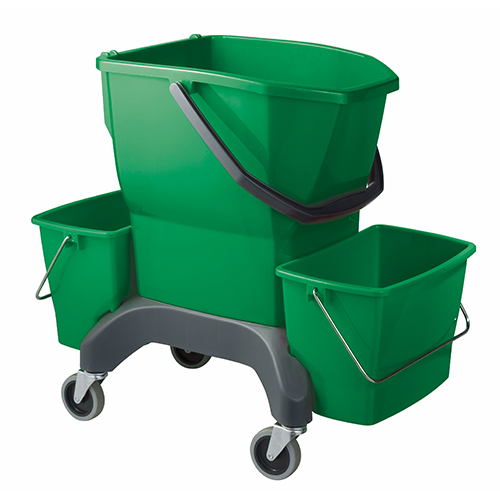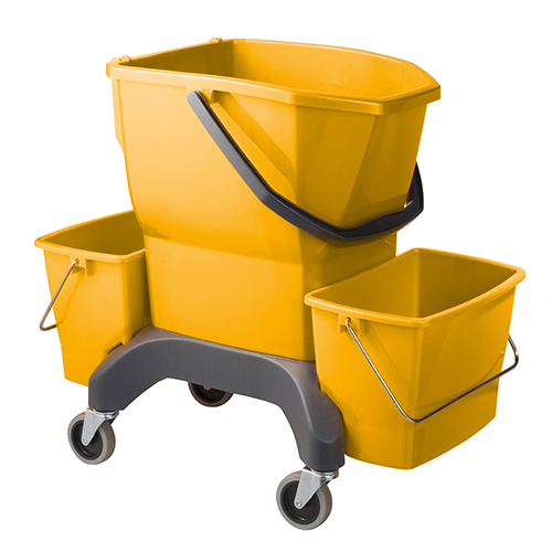 Ergonomic design with elevated castors for easy manoeuvrability. Removable dirt trap and drain plug for easy cleaning. 7 Litre twin detachable buckets for handy storage of chemicals and cloths. For use with Oates Ezy Ergo Press Wringer (IW-500 series).