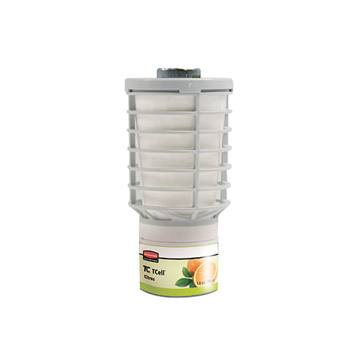 Rubbermaid TCell Refills create hydrogen in the fragrance chamber. As each molecule of hydrogen is created, it forces an equal volume of fragrance and odour neutraliser out of the chamber. Natural airflow distributes the fragrance throughout the room.