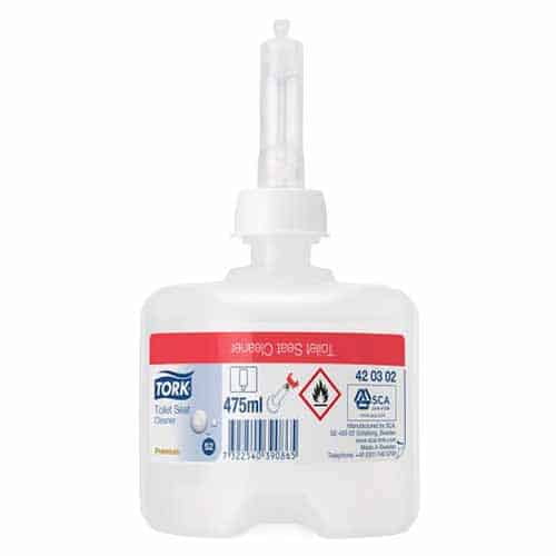 The Tork Toilet Seat Cleaner provides an extra reassurance to your visitors. Using just one dose of Toilet Seat cleaner on a piece of toilet paper results in a more hygienic toilet seat. Suitable for Tork Mini Liquid Soap Dispensers.