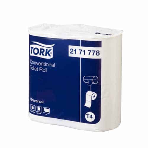 Tork T4 Conventional Toilet Rolls provide simple and reliable continuous toilet sheets in a number of tissue qualities. Suits all Tork T4 Dispenser Systems.