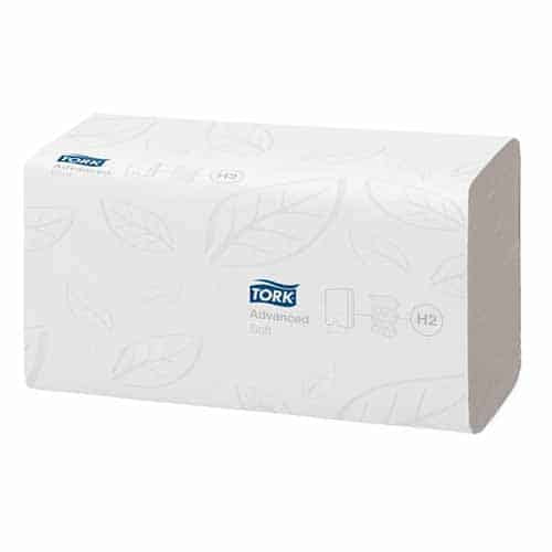 This most popular Tork H2 Multifold hand towel system offers single dispenser from compact Tork H2 dispensers. There are a number of towel options available including the high absorbent 2ply “though Air Dried” towel that dry hands quickly.