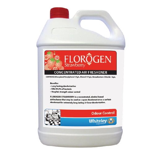 Whiteley Florogen concentrated alcohol air fresheners can be used as space or surface deodorisers for extremely long lasting performance. Florogen removes unwanted odours and provides a positive method for increasing hygiene in the immediate area of use.